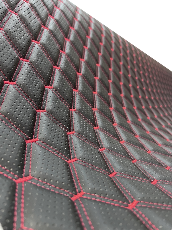 Экокожа перфорированная, стеганная. Черная-строчка красная